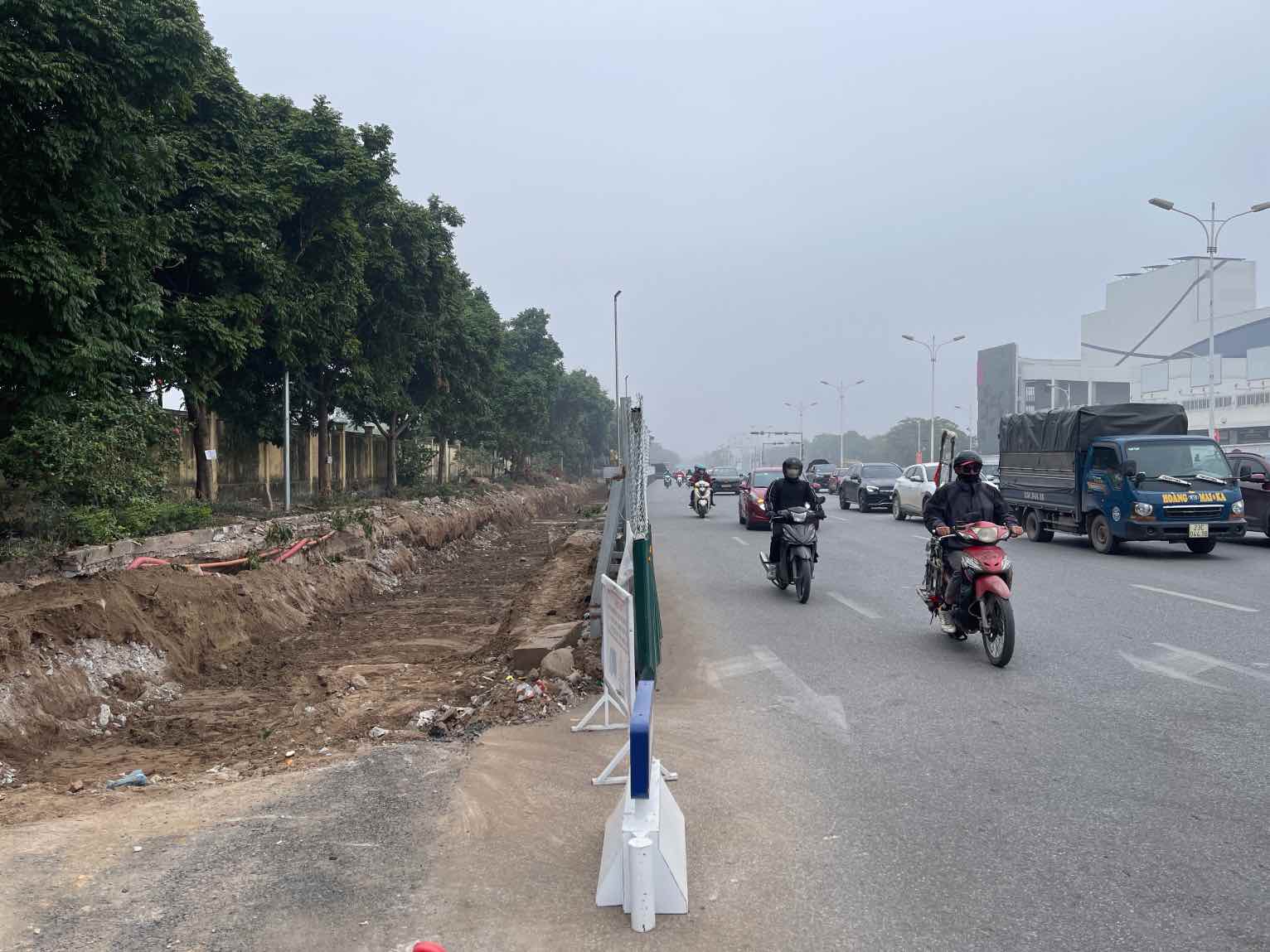 Los registros muestran que, actualmente, la valla de construccion en el cruce de Co Linh ha sido retirada y la acera se ha ampliado para que circulen los vehiculos.