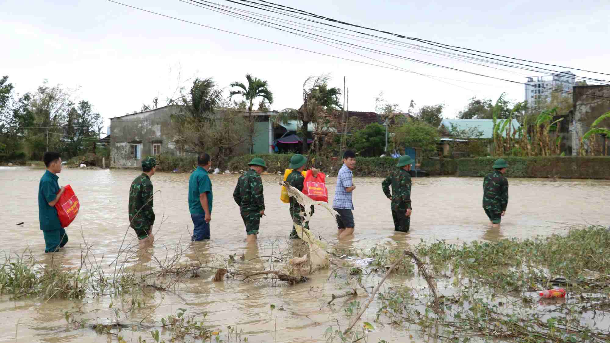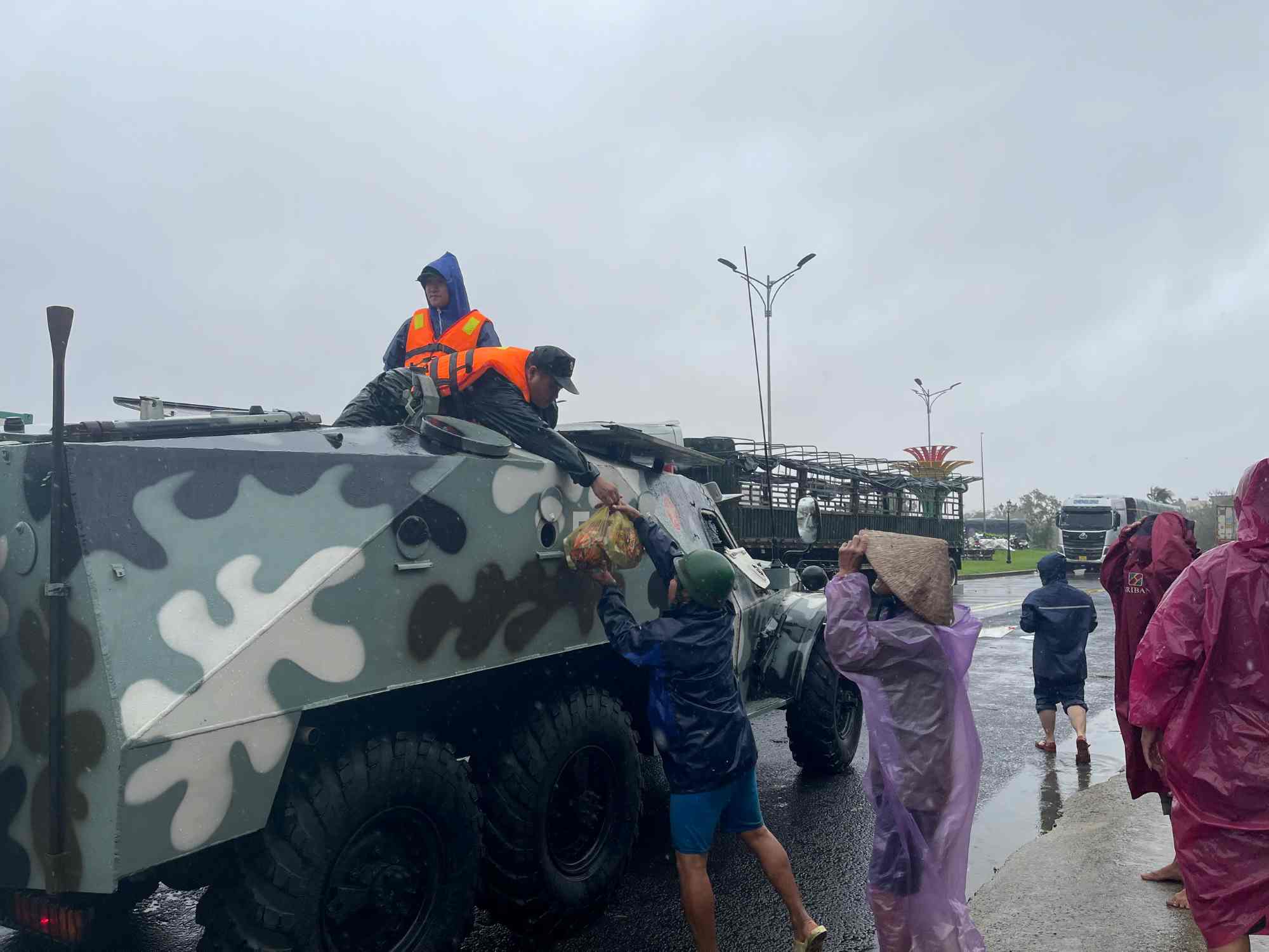 En la mañana del 21 de noviembre en condiciones de fuertes lluvias prolongadas la Region Militar 5 desplego fuerzas y vehiculos especiales utilizando vehiculos blindados para superar el agua torrencial para llevar miles de suministros basicos a los puntos de inundacion profunda. En las comunas de Tay Hoa Dong Hoa Tuy An Bac Dong Xuan y Xuan Loc y el barrio de Binh Kien provincia de Dak Lak (antigua Phu Yen) el nivel del agua de las inundaciones sigue aumentando y muchas areas estan completamente separadas.