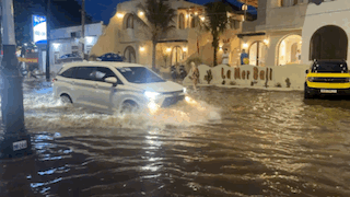 Binh Thuan - Despues de la fuerte lluvia, inundada con muchas secciones en la ruta turistica, lo que hace que los vehiculos inunden la mitad de las ruedas. La arena roja se inundo por el camino.