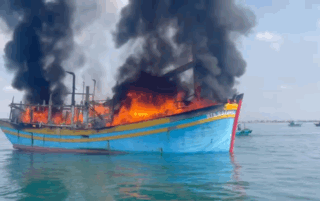 Barco pesquero se incendia violentamente en el mar de Phan Thiết