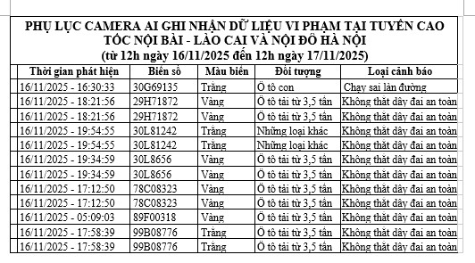 La camara A.I en el km 20 de la autopista Noi Bai - Lao Cai registro 17.909 vehiculos pasando a una velocidad media de 74 46 km/h.
