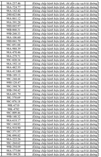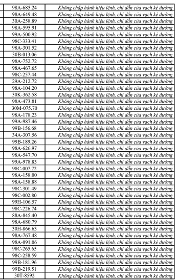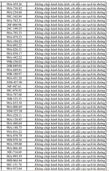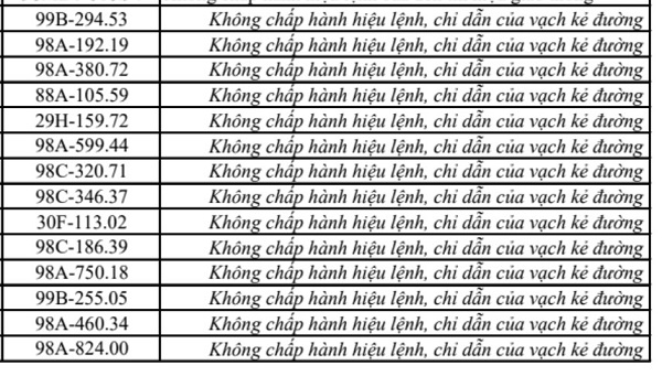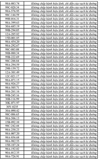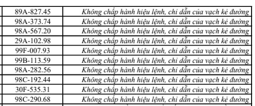 La policía de tráfico de Bac Ninh también informó que, del 4 al 10 de abril, a través de la explotación del sistema de cámaras de vigilancia y el uso de equipos profesionales, la policía de tráfico registró muchos casos de invasión de carril y nivelación de líneas. La lista es la siguiente: