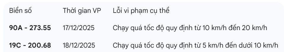 La policia de Cao Bang acaba de anunciar la lista de vehiculos multados por exceso de velocidad desde el 18 de diciembre de 2025 hasta el 25 de diciembre de 2025. Entre ellos, los propietarios de vehiculos multados por exceso de velocidad son los siguientes: